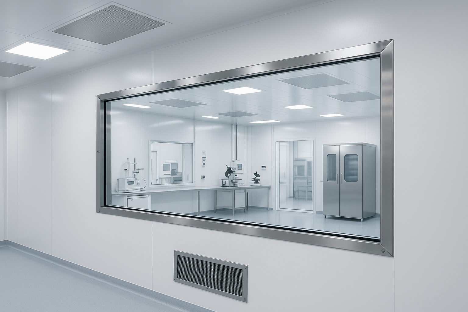 - Keserasian dengan pintu atau sekatan bilik bersih bersebelahan memastikan bahawa tingkap tidak menjejaskan persekitaran terkawal.